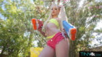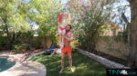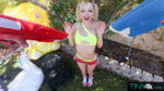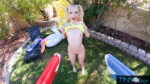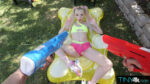 Cecelia Taylor teases in yellow bikini and pink booty shorts with water guns before stripping nude poolside, her skinny frame, sexy thighs, …